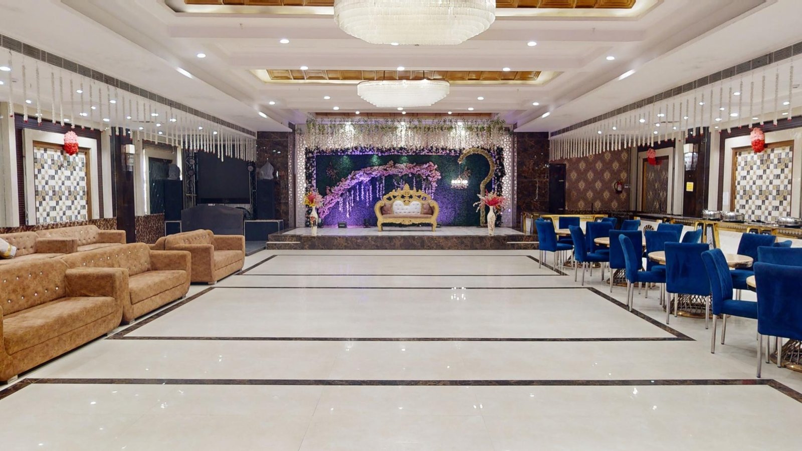 Step into our elegant halls adorned with exquisite decor and sophisticated ambiance, creating an enchanting backdrop for your wedding festivities. Our attention to detail ensures every corner exudes opulence, setting the stage for unforgettable moments.