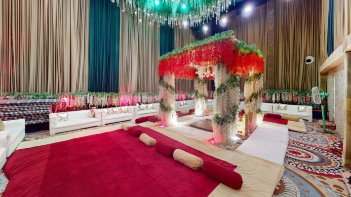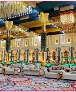 Stepping inside, you are greeted by spacious and meticulously designed interiors that can be customized to suit any occasion, whether it’s a wedding, corporate event, or social gathering. The venue features state-of-the-art amenities and facilities, including high ceilings, elegant lighting, and luxurious furnishings, creating an atmosphere of luxury and refinement.